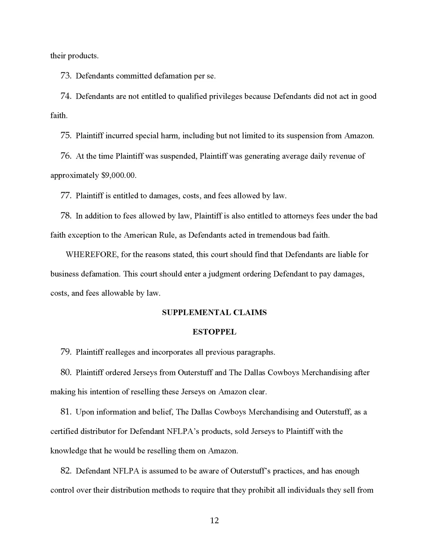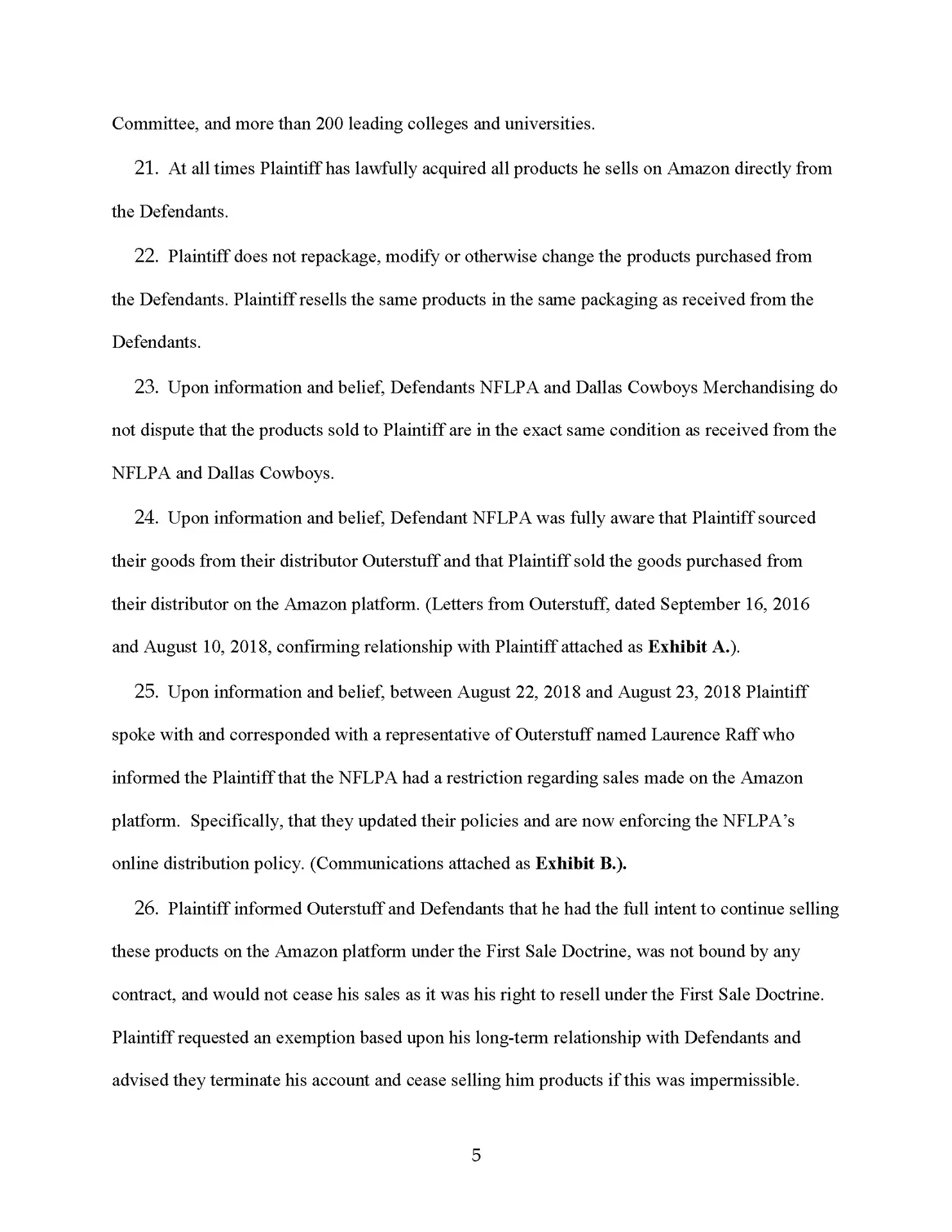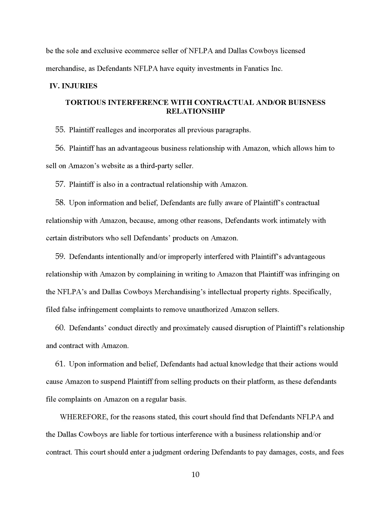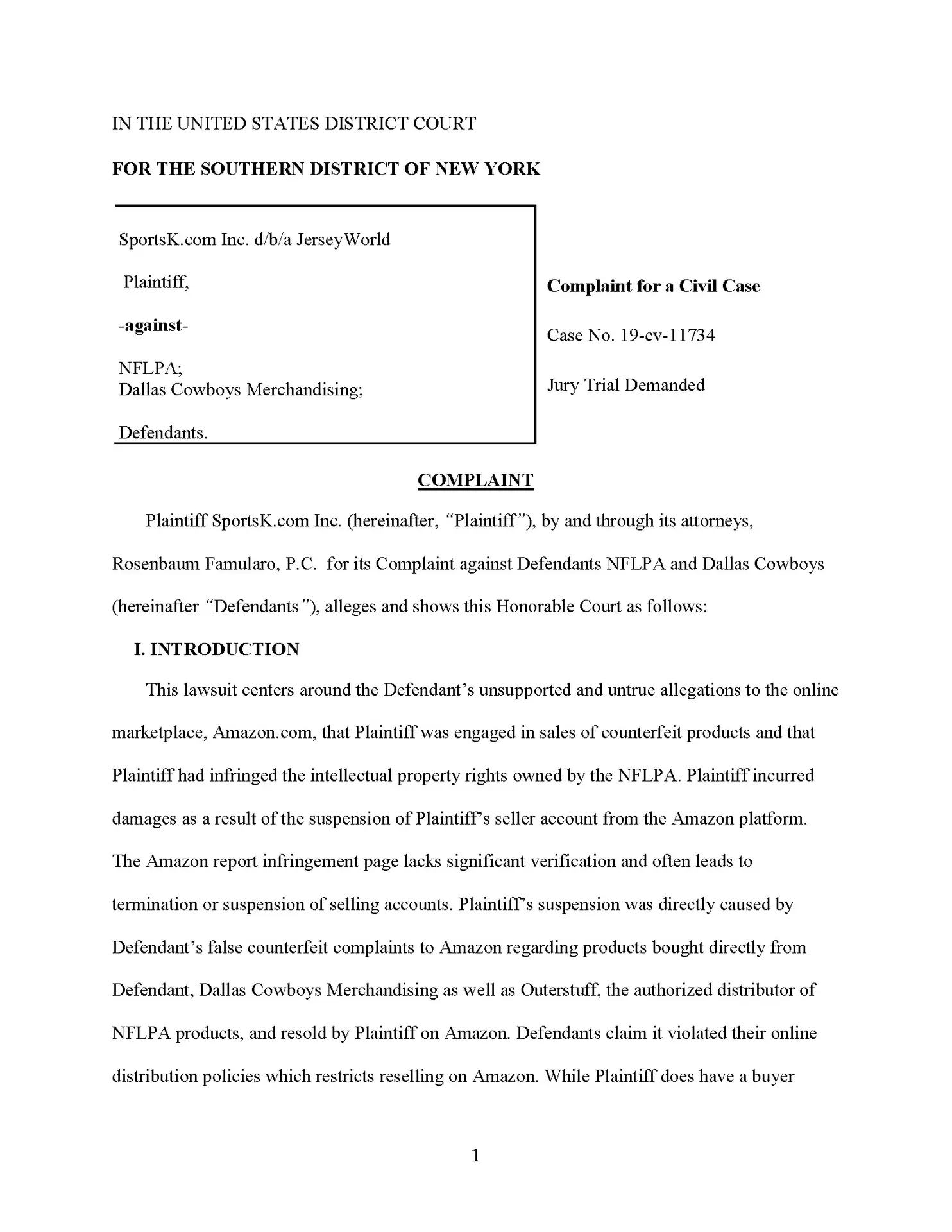 We are suing the Dallas Cowboys for making totally baseless complaints against one of our sellers who lost a boatload of money, and he’s not going to take it. So by the time you are seeing this news program, this law firm has sued the National Football League, the Dallas Cowboys, and the NFL players association for making 100% baseless IP complaints against one of our clients.