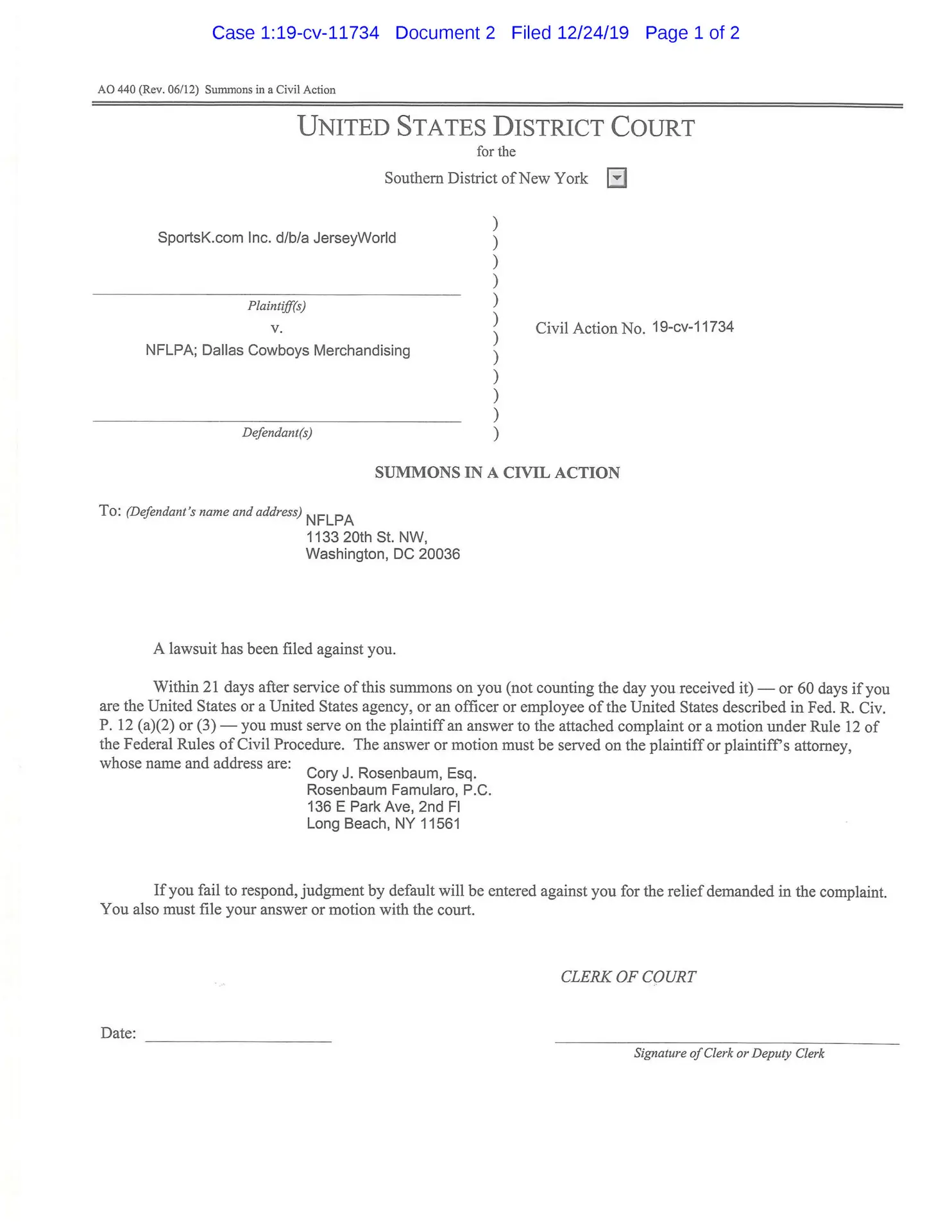 SUMMONS IN A CIVIL ACTION